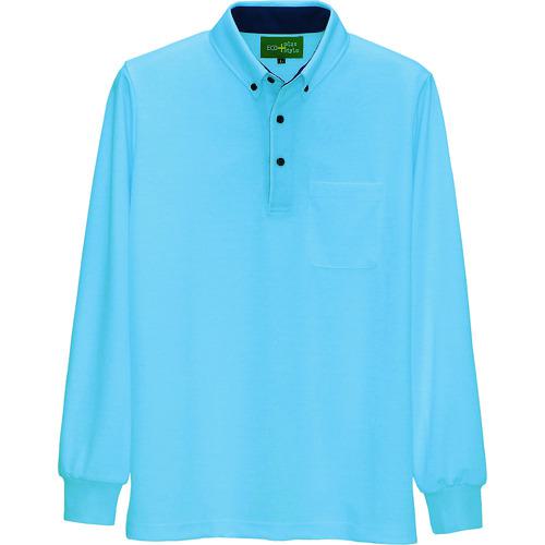 ■アイトス 長袖ポロシャツ(男女兼用) ブルー M 〔品番:7614-006-M〕【1450409:0】[送料別途見積り][法人・事業所限定][掲外取寄]